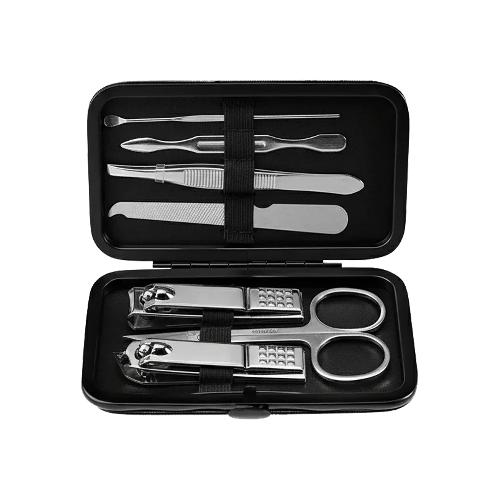 این کیت شامل ۷ ابزار ضروری و پرکاربرد است: قیچی، موچین، سوهان ناخن، پوشر کوتیکل، گوش‌پاک‌کن، ناخن‌گیر صاف و ناخن‌گیر زاویه‌دار. هر یک از این ابزارها نقش مشخصی در کوتاه‌کردن، فرم‌دهی، تمیزکاری و مرتب‌سازی ناخن‌های دست و پا دارند. ناخن‌گیر زاویه‌دار به اصلاح دقیق گوشه‌های ناخن کمک می‌کند. این طراحی از شکستن و آسیب‌دیدن ناخن‌ها جلوگیری می‌کند.